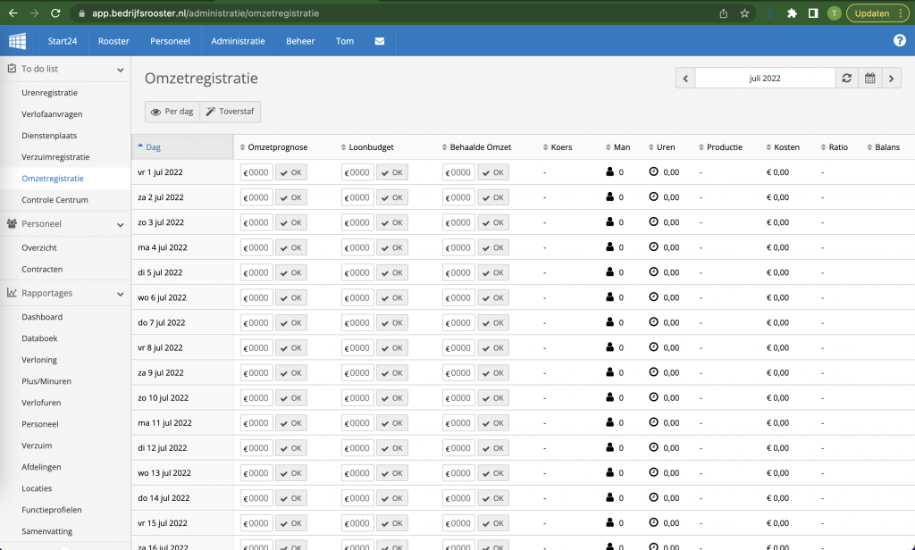 Zo zie je dus hoe veel personeelskosten je op een dag bijvoorbeeld maakt.